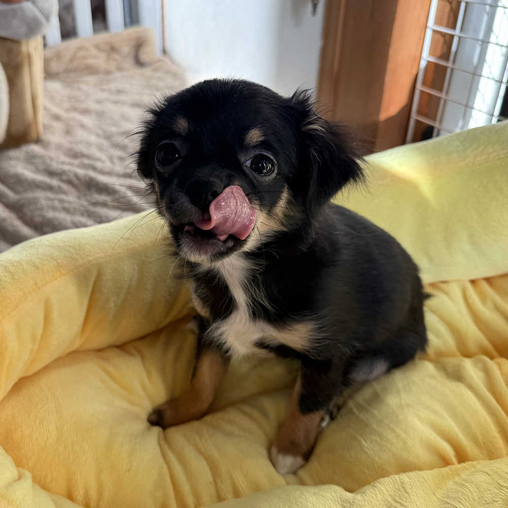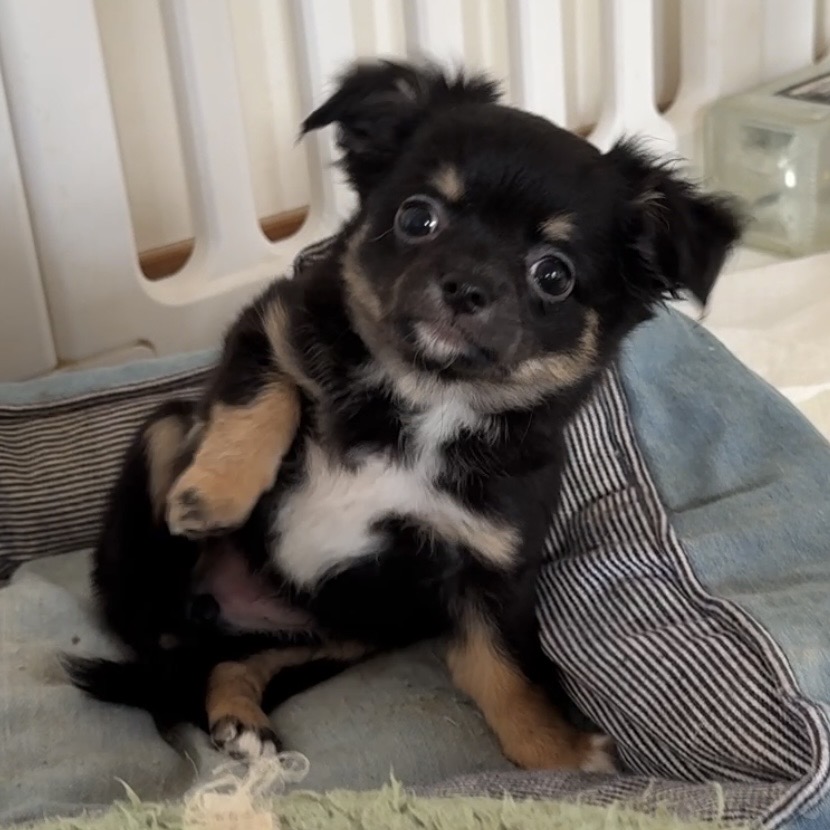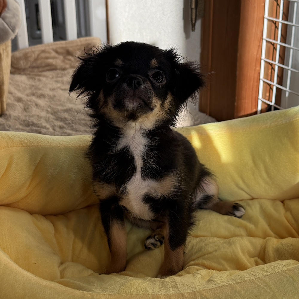 兄弟の中で一番小さい、ブラックタン&ホワイトの女の子です♪